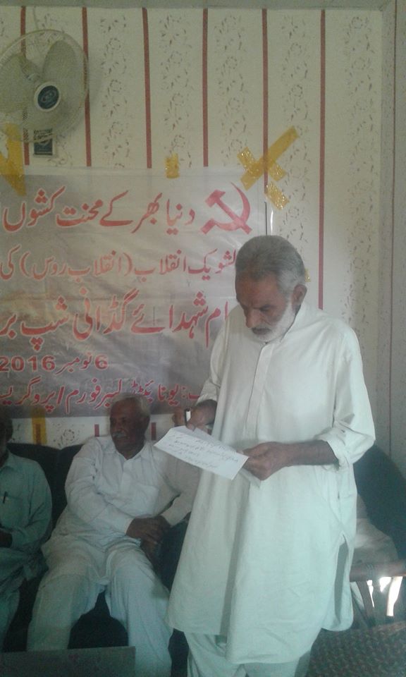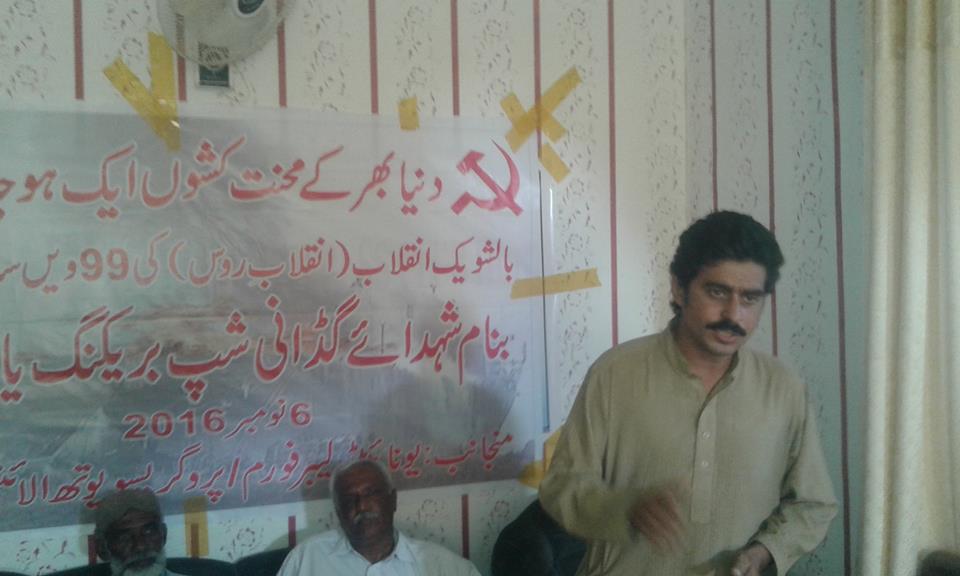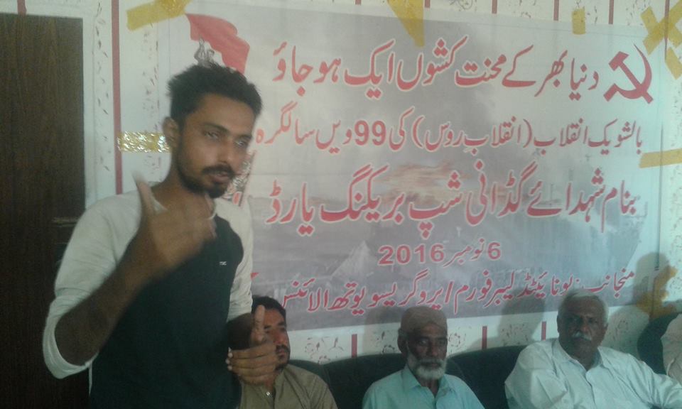 مورخہ 6نومبر بروز اتوار لسبیلہ پریس کلب میں یونائیٹڈ لیبر فورم اور پروگریسو یوتھ الائنس کے زیر اہتمام ’’بالشویک انقلاب کی 99ویں سالگرہ بنام شہدائے گڈانی شپ بریکنگ یارڈ‘‘ کی تقریب کا انعقاد کیا گیا۔ تقریب کی صدارت یونائیٹڈ لیبر فورم کے صدر کامریڈ اللہ ورایو لاسی جبکہ مہمان خصوصی بی ایس او(پجار)کے انفارمیشن سیکرٹری بلاول بلوچ تھے جو کوئٹہ سے تقریب میں شرکت کے لیے پہنچے تھے۔ تقریب کو گڈانی شپ بریکنگ یارڈ میں ہونے والے سانحہ کے مزدور شہدا کے نام سے منسوب کیا گیا تھا۔