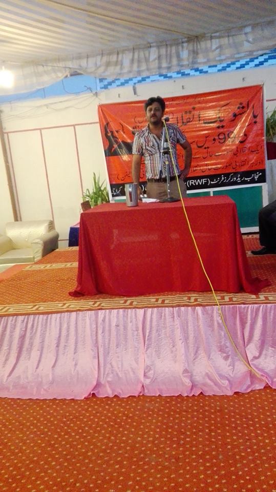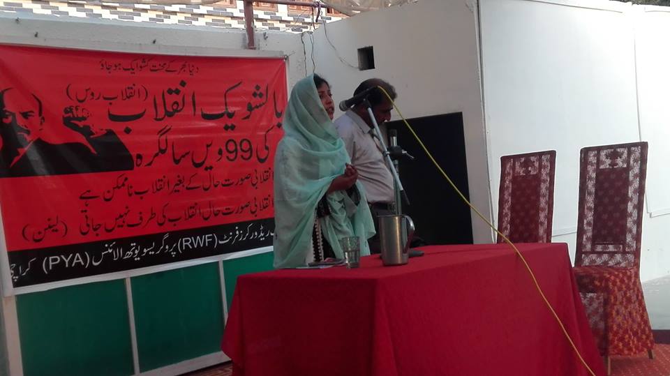 بالشویک انقلاب طبقاتی سماج کو بدلنے کی سب سے سنجیدہ کاوش ہے، واحد بلوچ جیسے سیاسی کارکنوں کی گمشدگی اور میر حاصل بلوچ جیسے نوجوانوں کا قتل عام سرمایہ دارانہ قومی ریاست کی زوال پذیری کا ثبوت ہے۔ عالمی منظرنامے میں جاری معاشی و سیاسی بحران سے نجات کا واحد راستہ پھر ایک بالشویک انقلاب ہی ہو سکتا ہے۔ ان خیالات کا اظہا ر مقررین نے ریڈورکرز فرنٹ(RWF) اور پروگریسو یوتھ الائنس(PYA) کے زیر اہتمام بالشویک انقلاب کی 99ویں سالگرہ کے موقع پر خطاب کرتے ہوئے کیا۔ پروگرام کا انعقاد 5نومبر کو پرنس گارڈن ہال بالمقابل ملیر کورٹس میں کیا گیا تھا۔ مقررین میں ریڈ ورکرز فرنٹ، کراچی کے آرگنائزر تصور قیصرانی، پروگریسو یوتھ الائنس کراچی کے آرگنائزر فارس راج، جنرل ٹائر ورکرز یونین کے رہنما صفدر جبار، این ایس ایف کوئٹہ کے کارکن فہیم بلوچ اور عوامی جمہوری پارٹی کراچی کے صدر رشیدسدھایونے شامل تھے۔