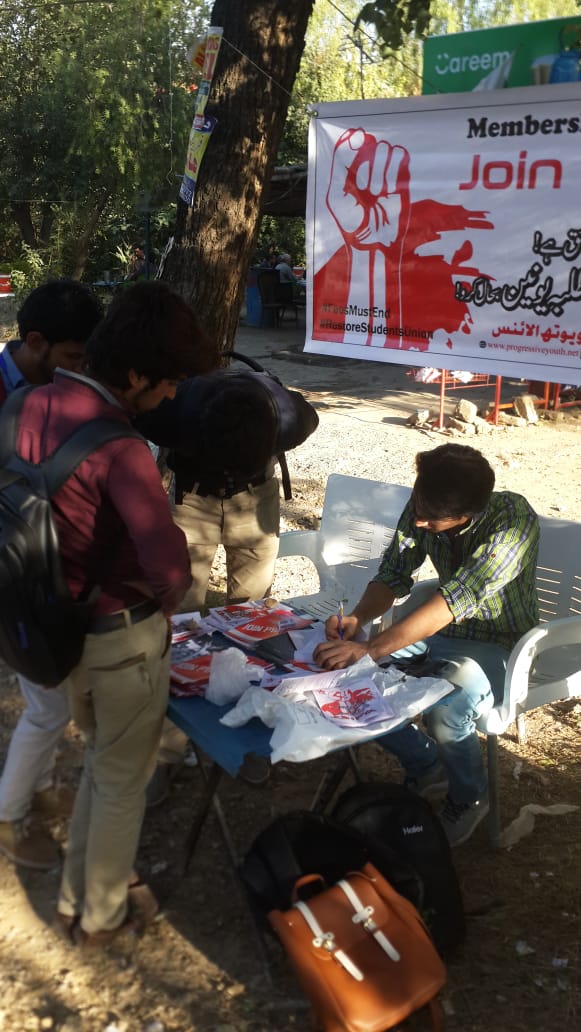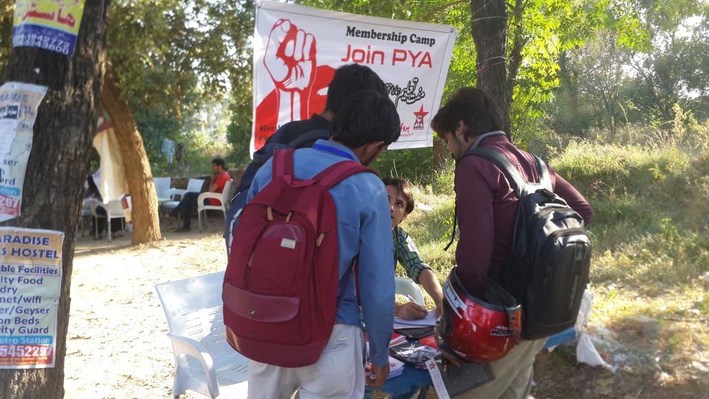 پروگریسو یوتھ الائنس اسلام آباد کی جانب سے 22اکتوبر 2018ء کو نیشنل یونیورسٹی آف ماڈرن لینگویجز(NUML) کے سامنے ممبر شپ کیمپ کا انعقاد کیا گیا۔کیمپ کا مقصد مفت تعلیم اور طلبہ یونین بحالی کی بحالی کیلئے جاری پی وائی اے کی جدوجہد میں نئے دوستوں کو شامل کرنا اور 15دسمبر 2018ء کو ہونے والے پی وائی اے کے نیشنل کنونشن (جس میں پی وائی اے کی نیشنل باڈی تشکیل دی جائے گی) میں شرکت کے حوالے سے طلبہ کو دعوت دینا تھا۔